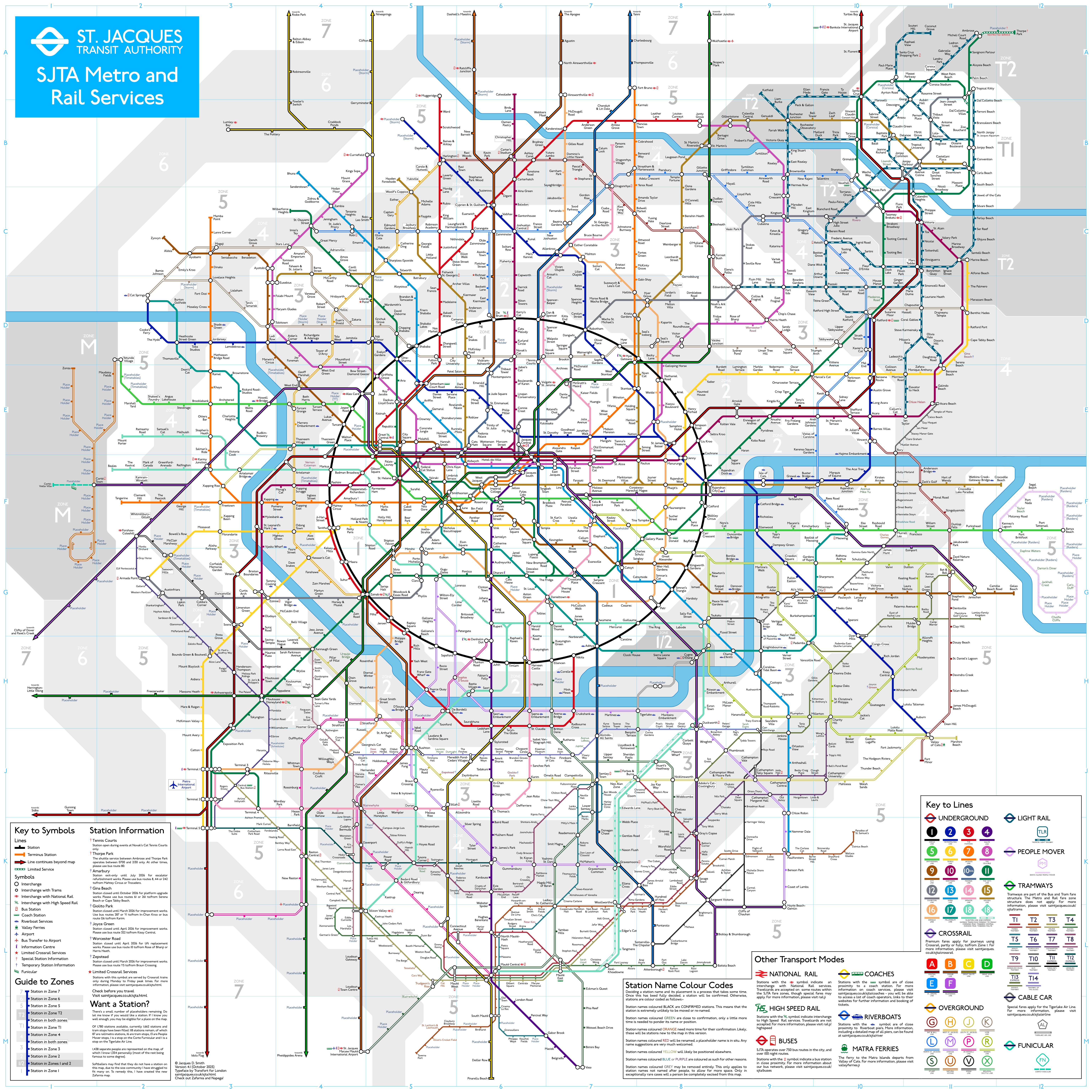 Stations have been added for around 40 new people. The ends of the Crossrail lines which extend beyond the St. Jacques Metropolitan area have been given names - all after members of the Metanet community (continuing on from the Napega map).